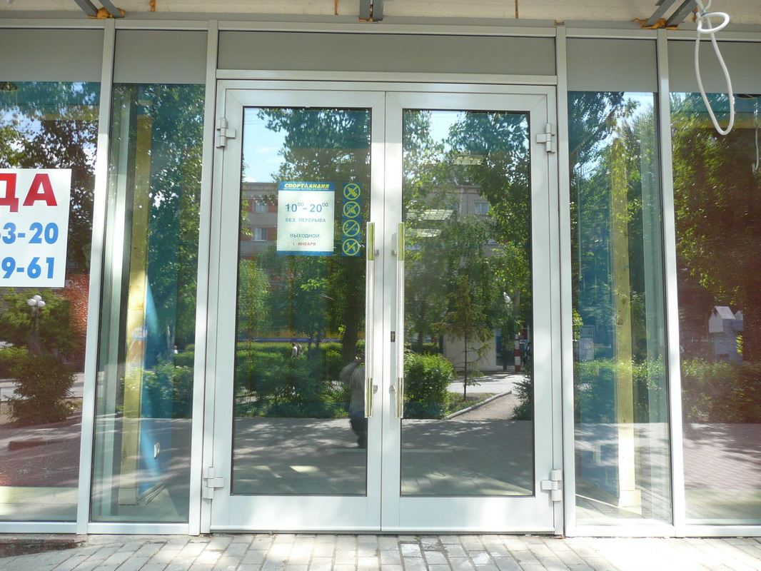 - маятниковые двери, тип “метро” с фетровым уплотнением и механизмами закрывания «DORMA» Германия, «GСС» Юж.Корея из «холодных» профилей системы AGS-50;